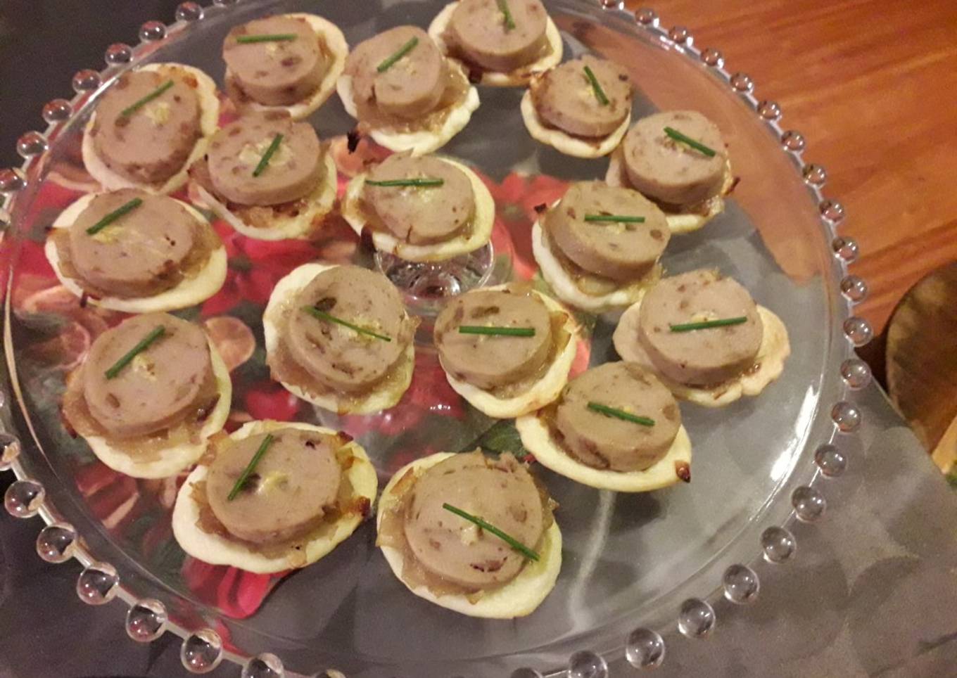 Encore quelques mignardises sympathiques pour l'apéritif ou en entrée. Je vous propose un tatin de boudin blanc à l'échalote. On est parti !