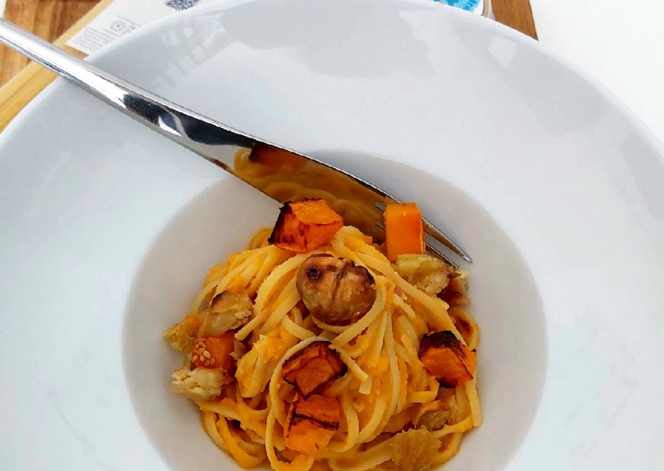 Linguines à la crème de butternut et miso au yuzu