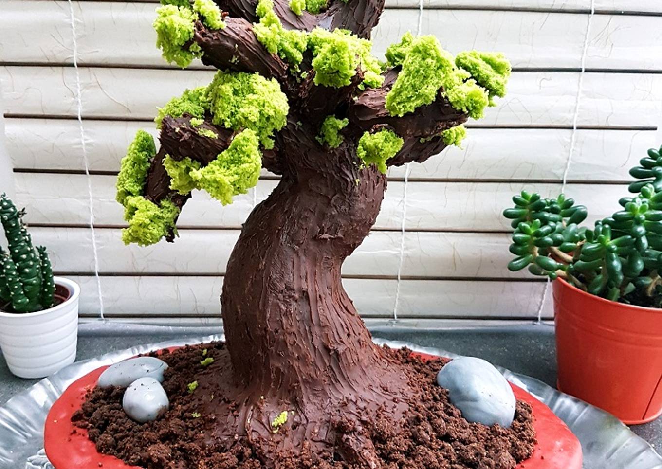 Voici la création d'un bonsaï qui se mange entièrement ! Ici, vous trouverez la recette du Carrot Cake (le pot) et le sponge cake (le feuillage).
